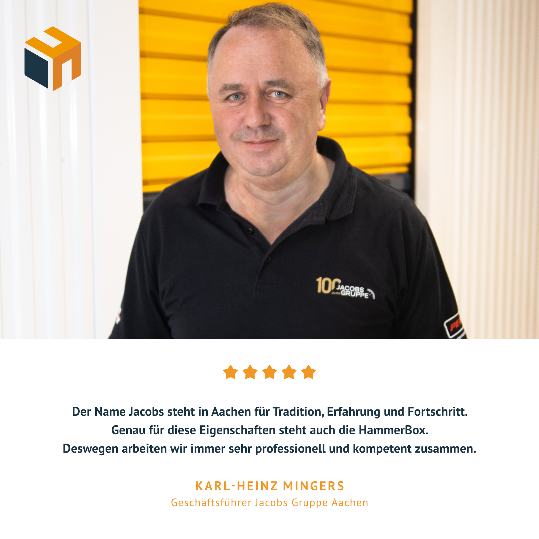Die Hammerbox in Aachen - hochmoderne Lagerlösungen auf mehr als 5.000 Quadratmetern. Bei uns können Sie Privates und Gewerbliches sicher, trocken und sauber lagern. So bleibt mehr Platz für Neues! Informieren Sie sich noch heute über unsere individuellen Lösungen. FLEXIBILITÄT wird bei uns großgeschrieben. Egal, ob es um Ihre Boxengröße oder die Vertragslaufzeit geht: Dinge ändern sich von Zeit zu Zeit und wir sind darauf vorbereitet. Überzeugen Sie sich selbst.
